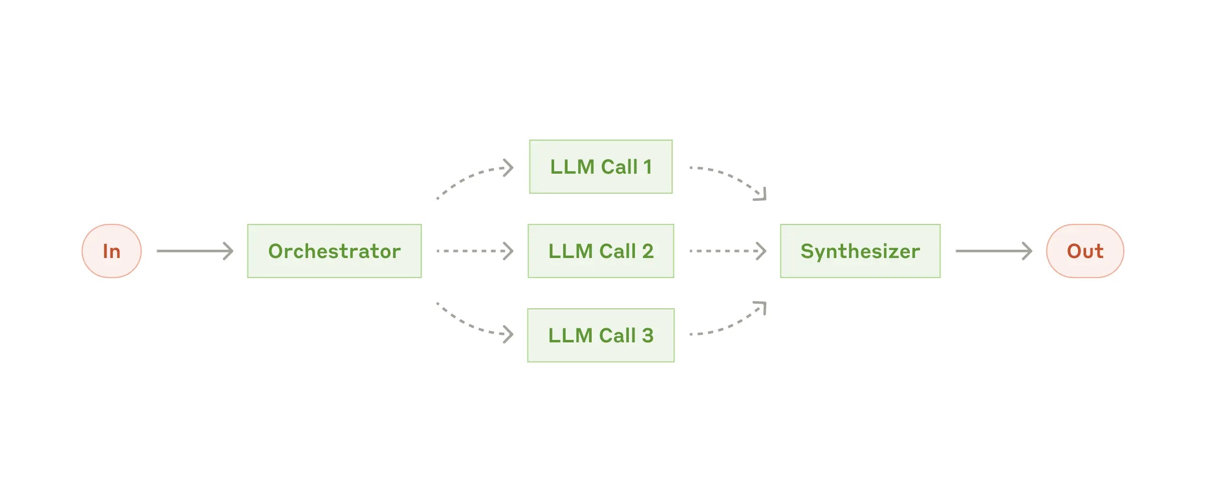When to use this workflow: This workflow is well-suited for complex tasks where you can’t predict the subtasks needed (in coding, for example, the number of files that need to be changed and the nature of the change in each file likely depend on the task). Whereas it’s topographically similar, the key difference from parallelization is its flexibility—subtasks aren't pre-defined, but determined by the orchestrator based on the specific input.