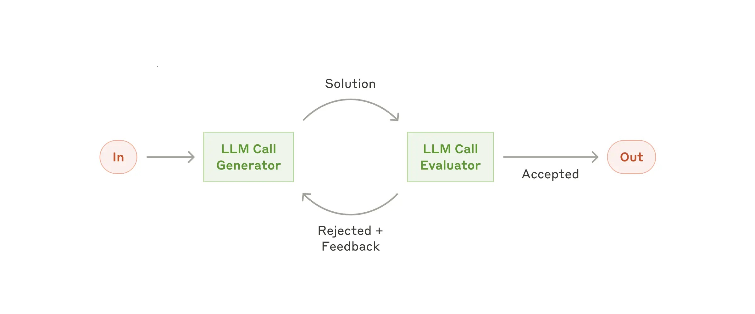 When to use this workflow: This workflow is particularly effective when we have clear evaluation criteria, and when iterative refinement provides measurable value. The two signs of good fit are, first, that LLM responses can be demonstrably improved when a human articulates their feedback; and second, that the LLM can provide such feedback. This is analogous to the iterative writing process a human writer might go through when producing a polished document.